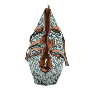 Colour: Grey-Black print with brown accents and gold hardware