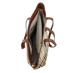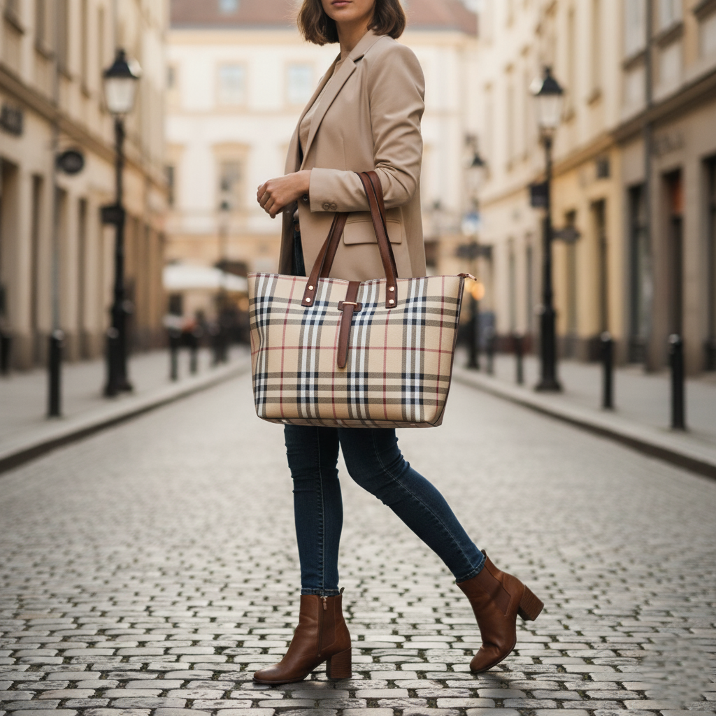 Elevate your everyday look with this Women’s Designer Printed Tote Handbag, featuring a signature checked pattern and elegant brown PU leather detailing. Crafted from high-quality printed canvas, this tote captures timeless sophistication with a modern twist. The spacious, structured silhouette ensures style and functionality, making it an ideal choice for office, travel, or casual outings.