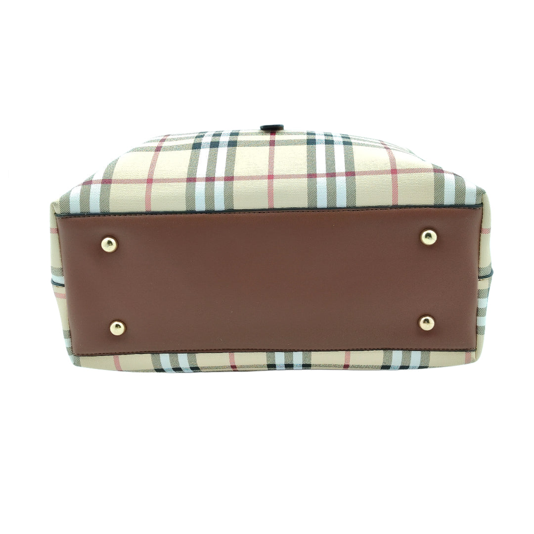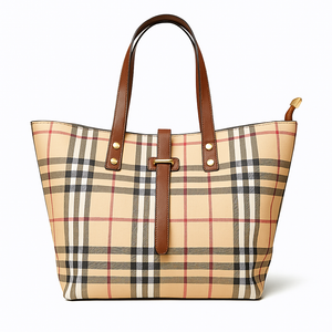 The design of this tote is inspired by the classic luxury aesthetic of Burberry’s signature plaid collection, showcasing a refined checkered pattern that exudes elegance and class. With its roomy main compartment, two inner zipper pockets, and one open pocket, this handbag keeps your essentials neatly organized while adding a touch of designer-inspired charm to any outfit. The sturdy PU leather handles, decorative strap, and reinforced base with gold studs enhance durability and elegance.