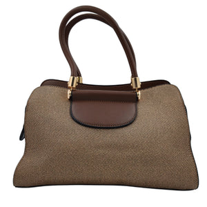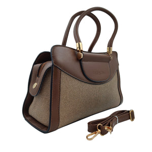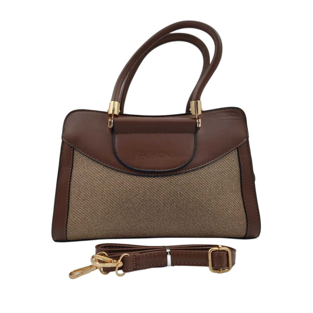 Women’s Brown & Beige Handbag – Polyurethane Textured Finish with Gold Accents & Adjustable Sling Strap