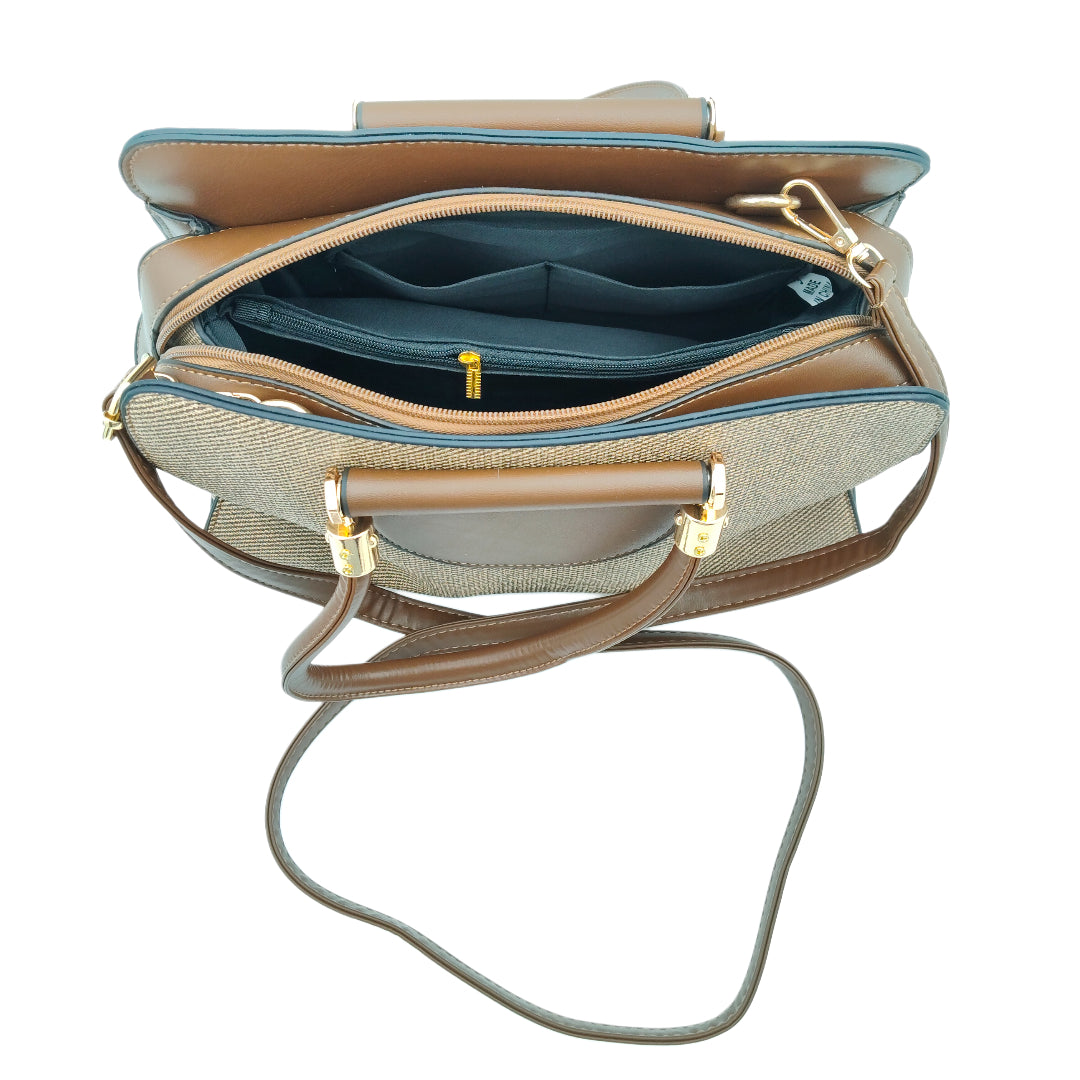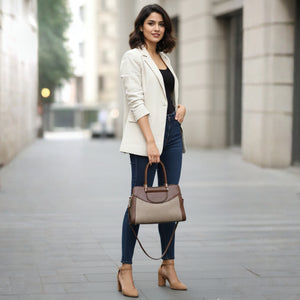 Add timeless elegance to your wardrobe with this Women’s Brown & Beige Handbag, crafted with a premium polyurethane body featuring a refined textured finish. The warm beige tone contrasts beautifully with rich brown accents, while polished gold hardware enhances its luxurious appeal. Designed for both style and practicality, this handbag transitions seamlessly from office wear to casual outings and festive occasions.