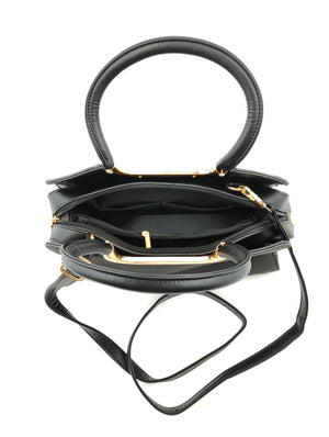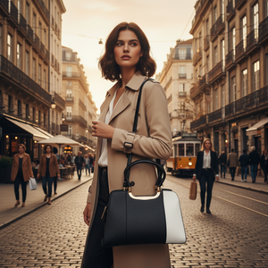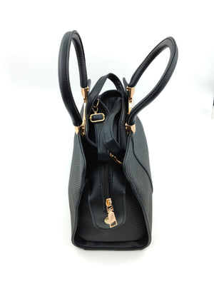 Step into timeless elegance with this Women’s Two-Toned Handbag, featuring a sleek combination of black and white panels enhanced with luxurious gold detailing. Designed with a structured silhouette, it comes with a durable gold-accented handle for a premium touch and a detachable sling strap for versatile styling. The spacious interior with multiple compartments ensures functionality while maintaining a chic, modern look – perfect for office, parties, or everyday outings.
