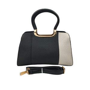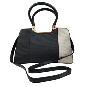 Women’s Two-Toned Handbag – Black & off White with Gold Detailing and Sling Strap