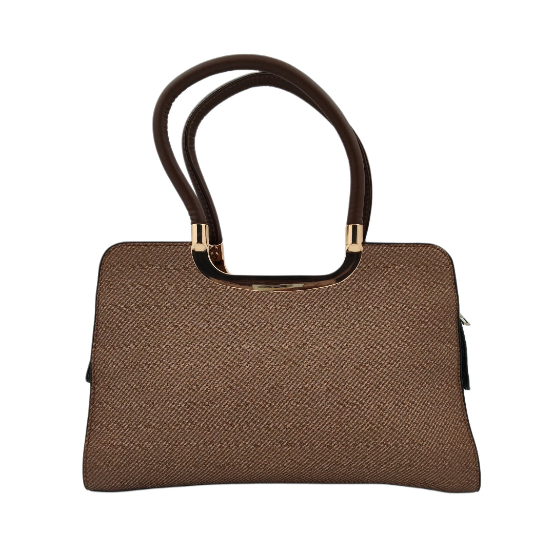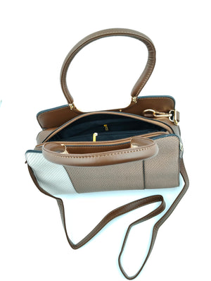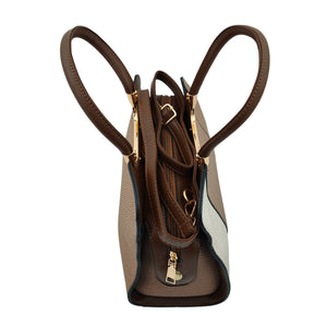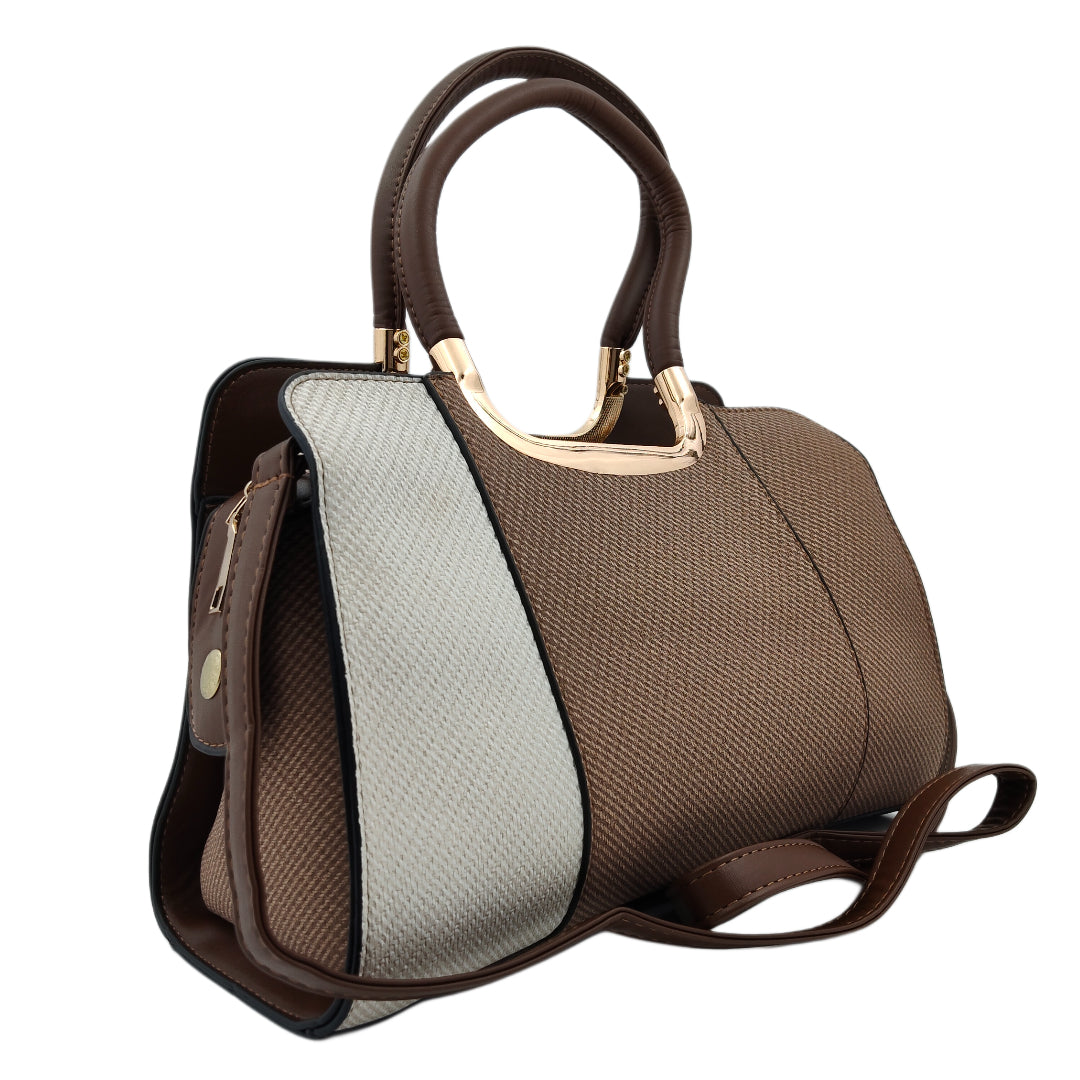 Women’s Two-Toned Handbag – Women’s Two-Toned Handbag – Beige & Dark Brown with Gold Detailing and Sling Strap
